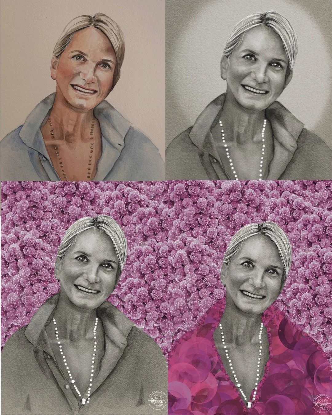 Inicio el proceso con un retrato original personalizado realizado en acuarela en papel Hahnemühle 640 g/m2 o similar.