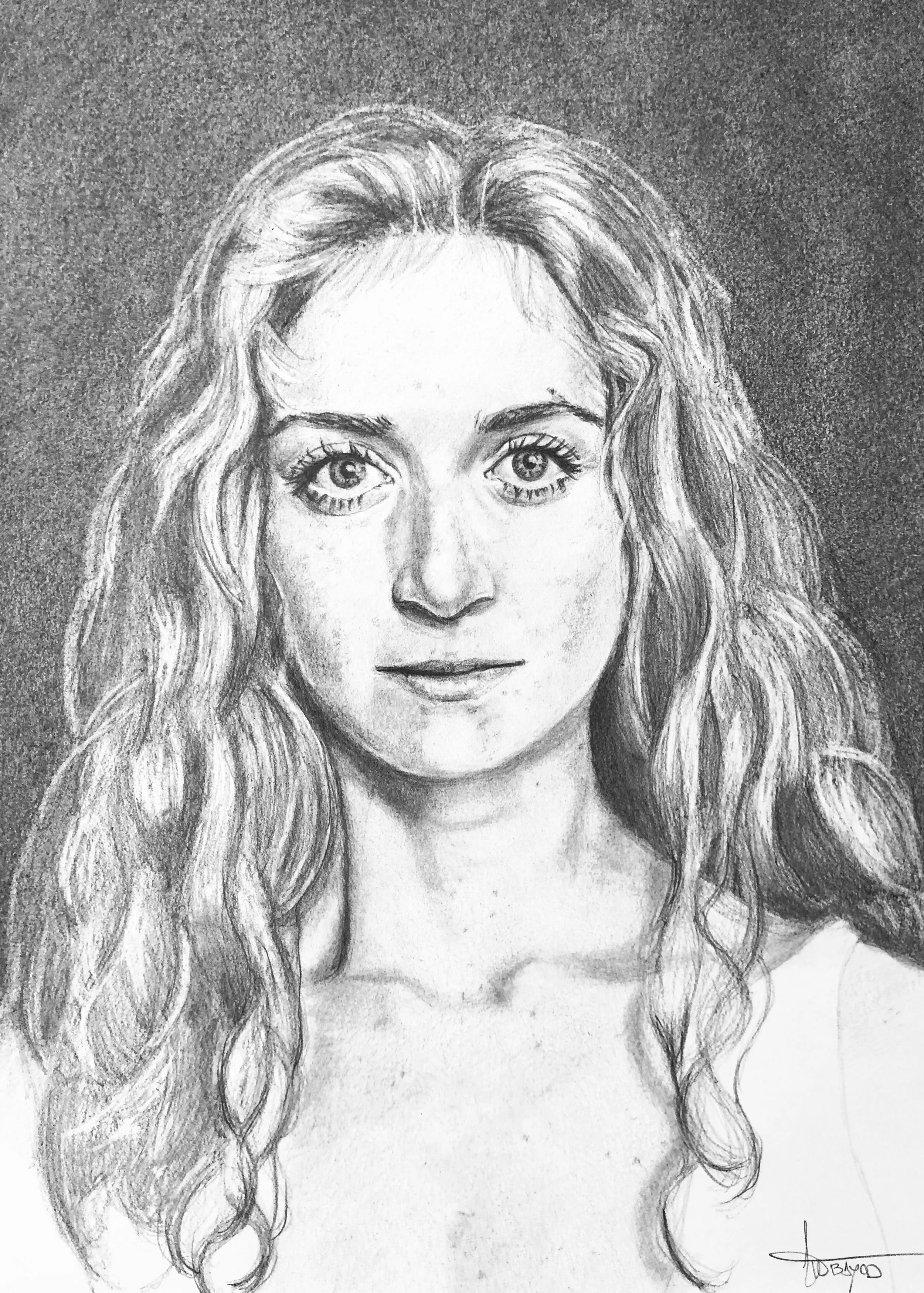 Retrato original personalizado realizado con lápiz y carboncillo en papel Canson Bristol 250 g/m2 o similar.